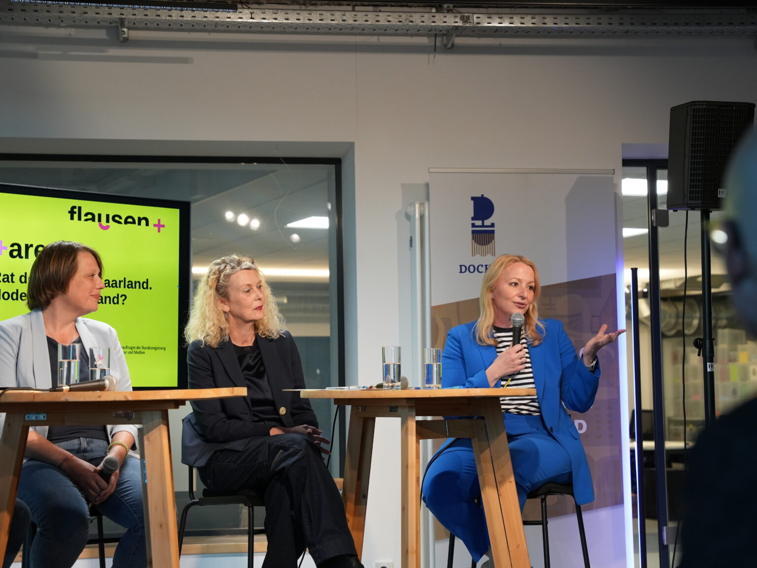 Am Dienstag, den 6. Mai 2025, lud das Bundesnetzwerk flausen+ gemeinsam mit dem Netzwerk Freie Szene Saar zur flausen+arena ins Dock 11 in Saarbrücken ein. Unter dem Titel „Der Rat der Künste Saarland. Ein Modell für das Land?“ diskutierte ein hochkarätig besetztes Podium, ob ein Rat der Künste ein geeignetes Modell für das Saarland sein könnte.